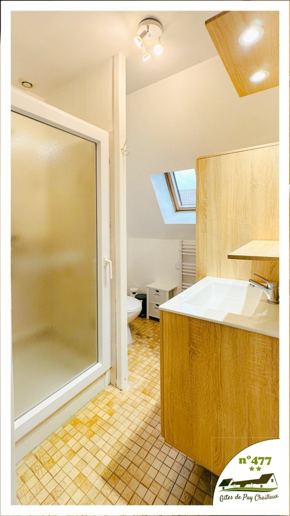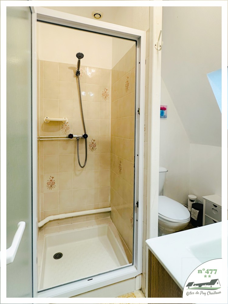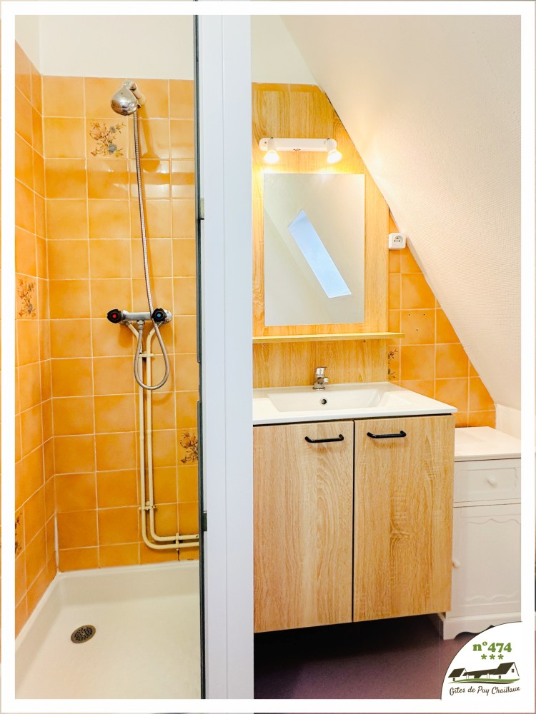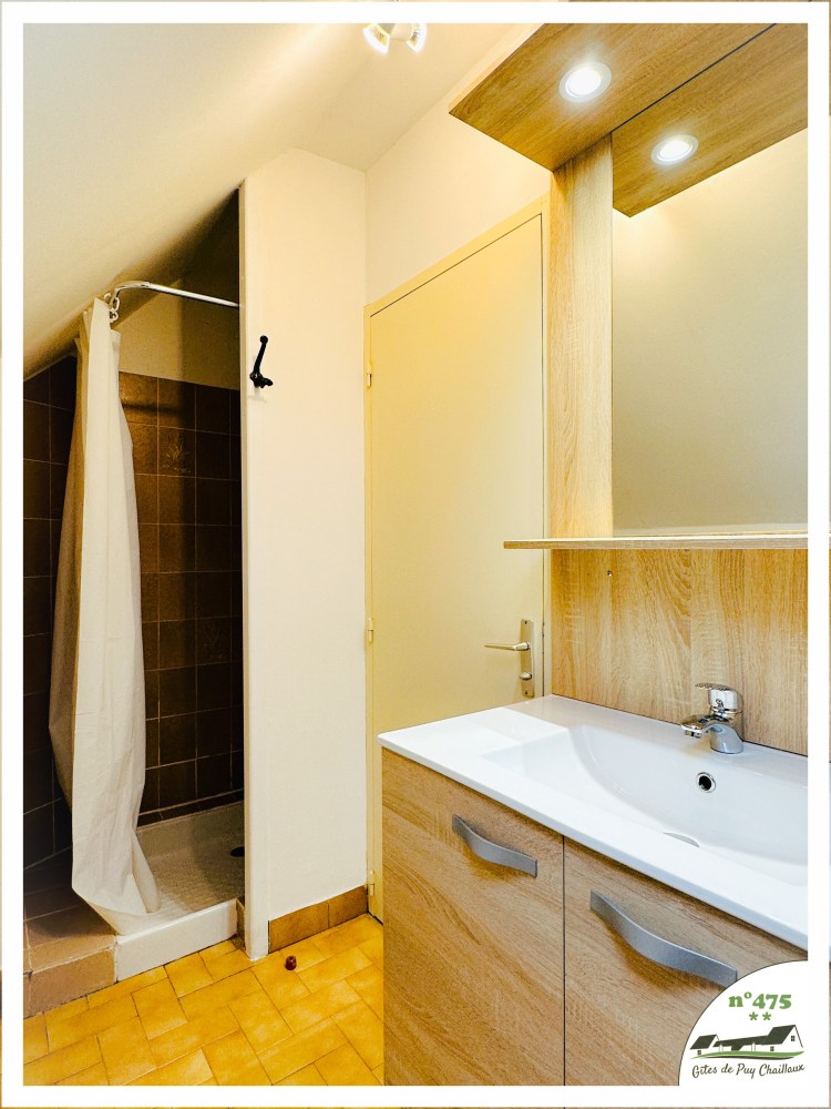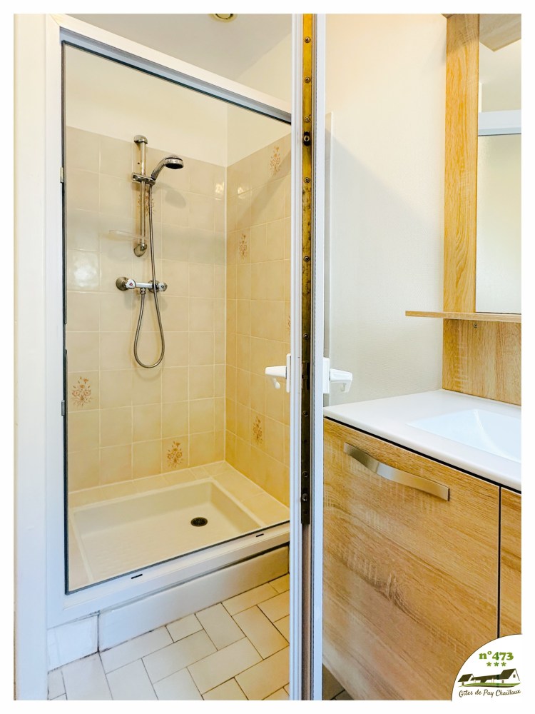 - Salle de bain avec douche et lavabo