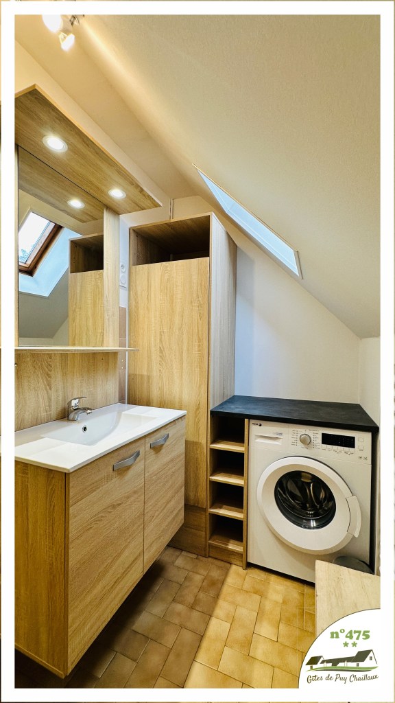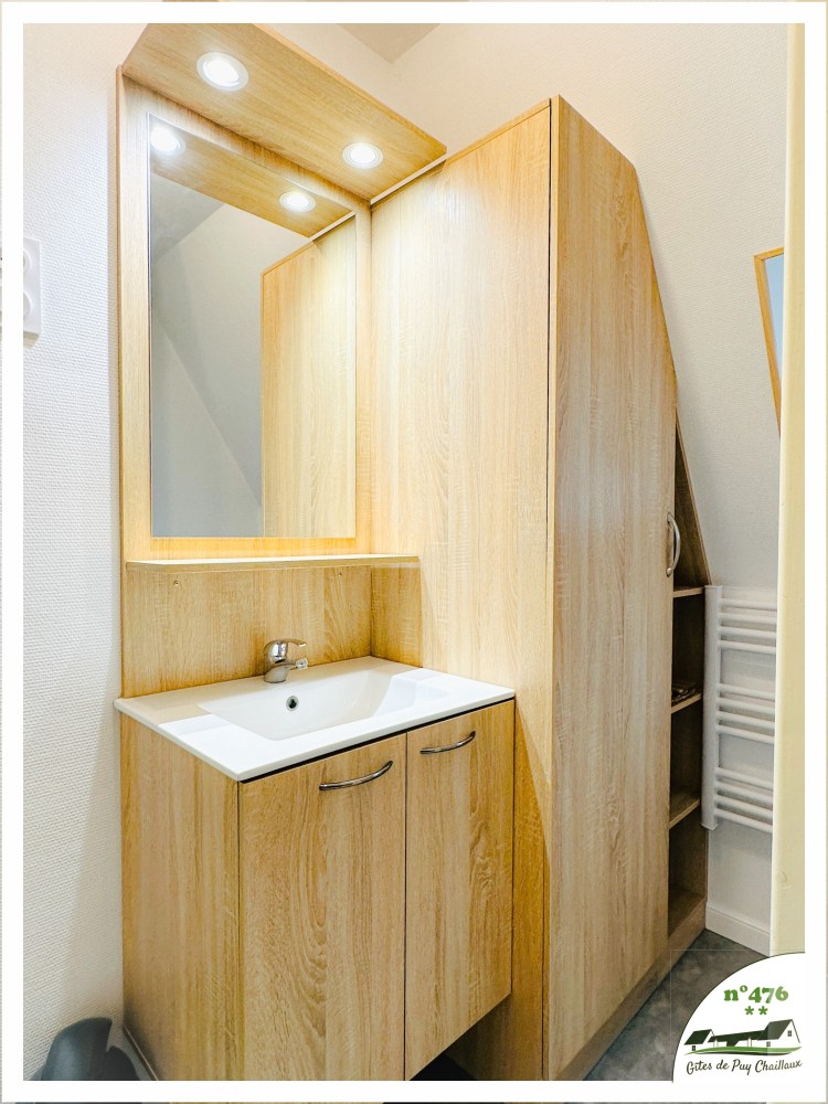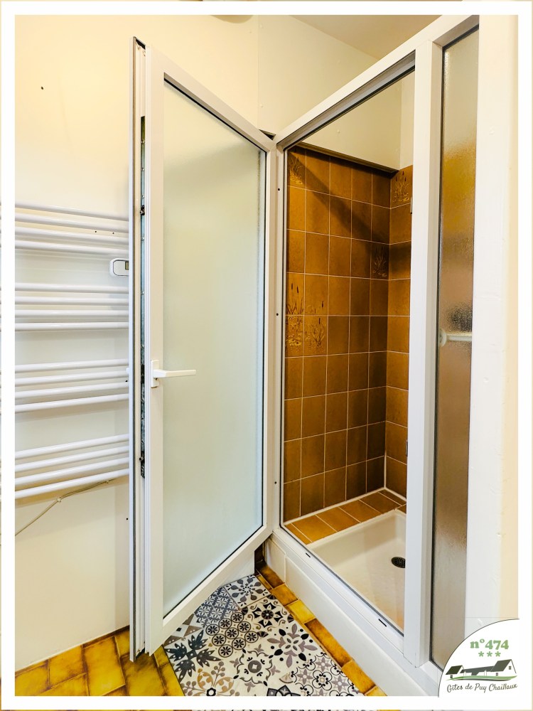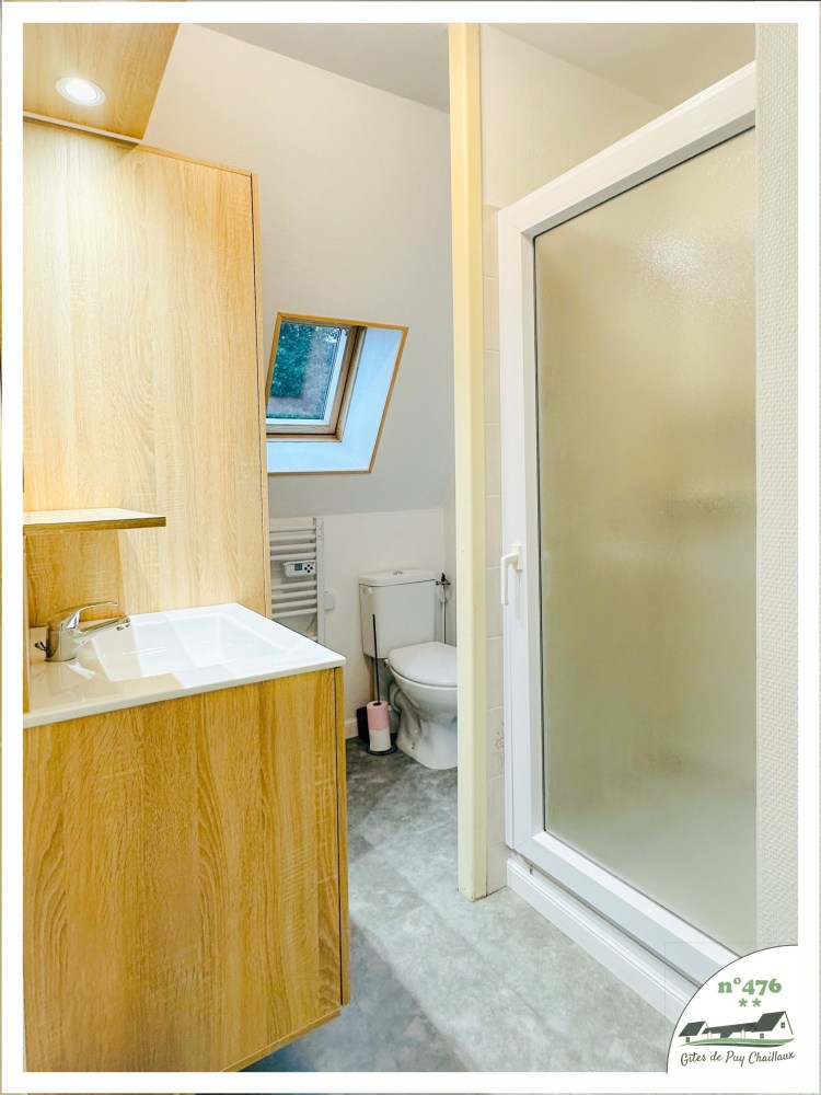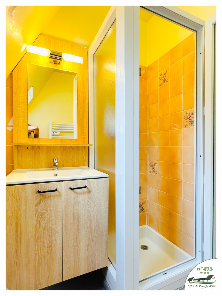 - Salle de bain avec douche et lavabo