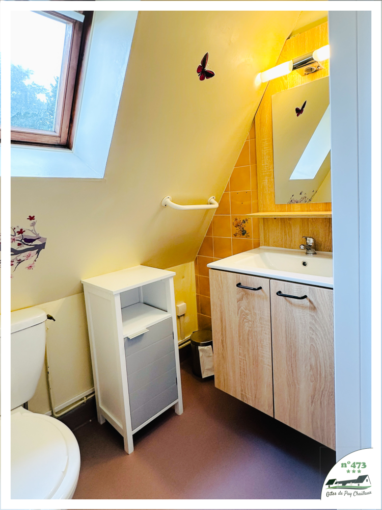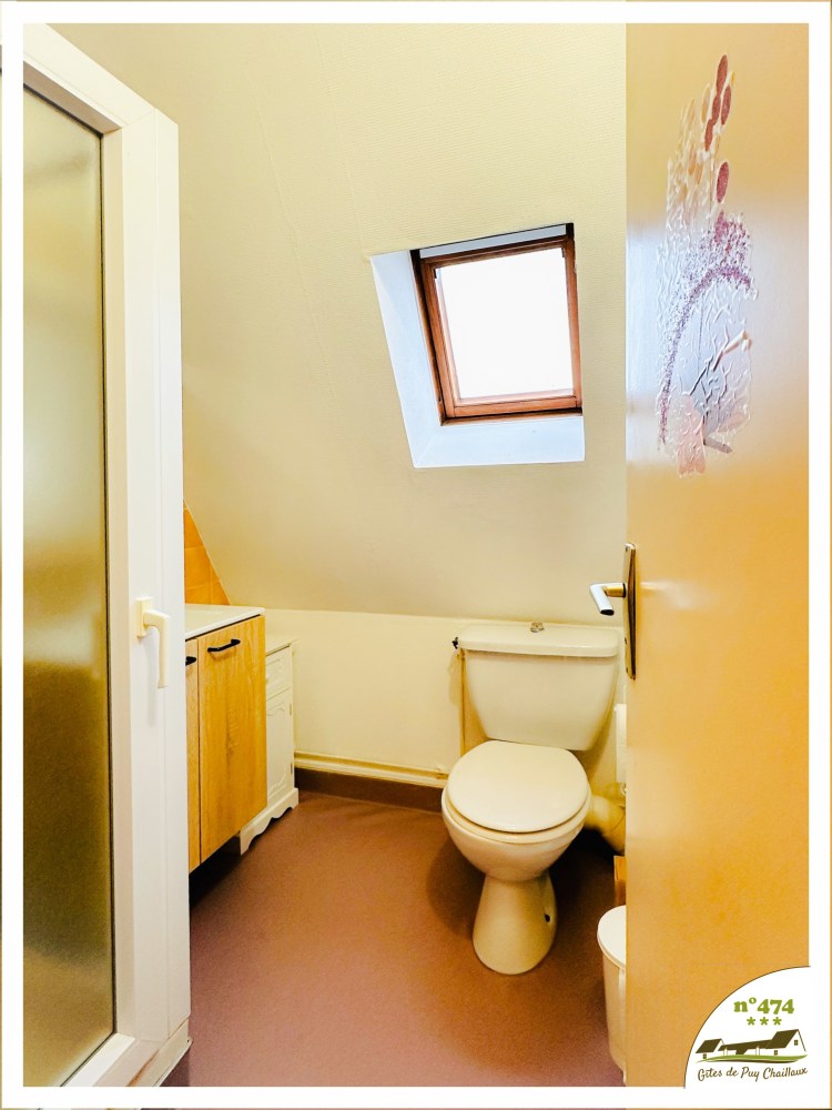 Etage : 1 chambre avec 1 couchage 140 (2 places) – 1 chambre avec 2 couchages 90 (1 place) – 1 salle de bain (douche) + WC