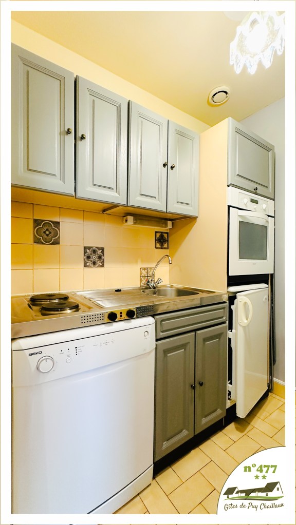 - Cuisine équipée avec lave-vaisselle, four, plaque de cuisson, frigo et congélateur